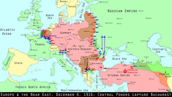 “După ce, în octombrie–noiembrie 1916, Armata a 9-a germană a forțat trecătorile sudice ale Carpaților, ieșind în flancul armatelor române din est, înfrângerea României era doar o chestiune de timp – și nu foarte mult, cum avea să se dovedească. Prăbușirea țării s-a produs cu o viteză remarcabilă, încheind un an sumbru cu o nouă mare victorie pentru Puterile Centrale și făcând pacea să pară mai îndepărtată ca oricând.