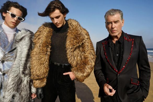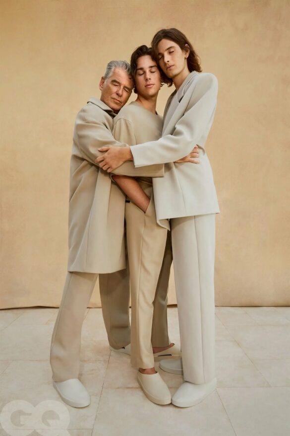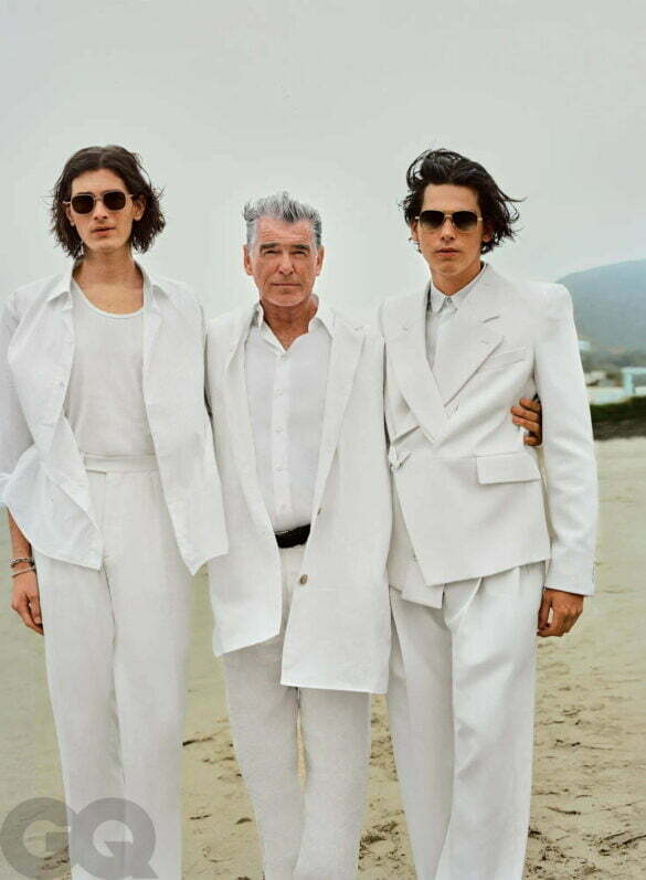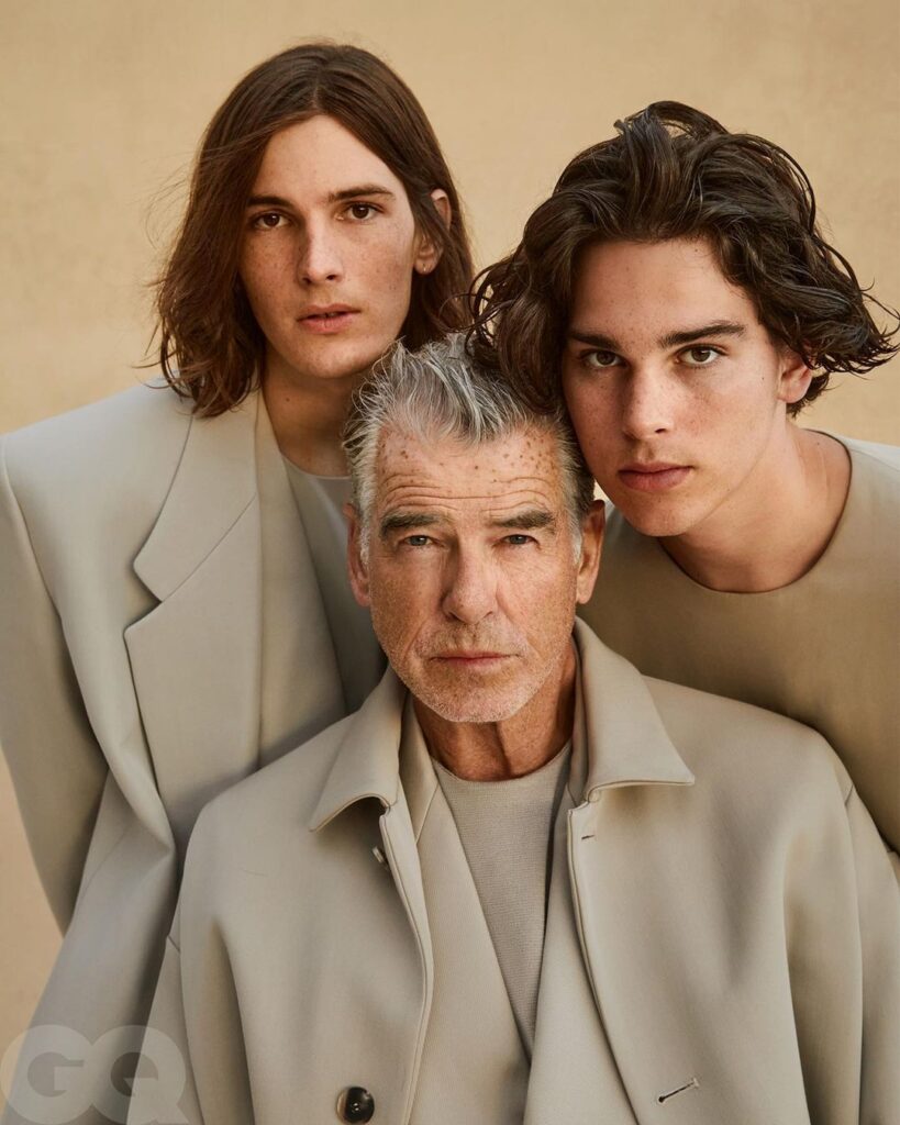 În numărul de septembrie al GQ UK a apărut un splendid pictorial de modă cu “băieții Brosnan” tras în Malibu: Pierce (69) și fiii lui, Dylan (25) și Paris (21). Frumoși-foc toți trei. 🙂 O plăcere să-i privești, de aceea am și ales să vi-i arătăm și vouă. Noi am tot postat despre mame și fiice, dar ce spectacol pot fi și tații alături de fiii lor! 🙂