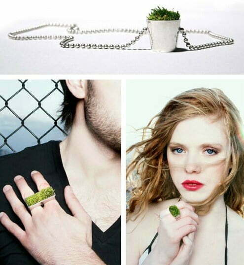 Este trendy să fii “verde”, moda ecologică este de ani buni pe catwalk, dar ce-a realizat Hafsteinn Juliusson în colecția “Growing Jewelry” by HAF este o premieră bizară: bijuterii care cresc! Fiecare piesă a noii colecții este realizată din argint și mușchi de pădure care trebuie udat lunar și ținut la frigider periodic, pentru a nu se usca.