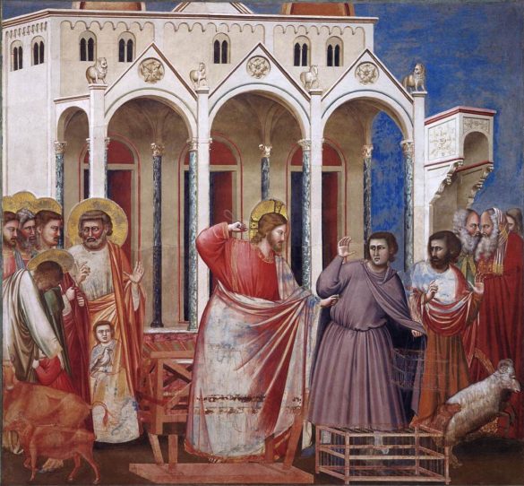 Giotto di Bondone, „Izgonirea negustorilor din templu”, frescă (cca. 1303–1305), Capela Scrovegni, Padova.