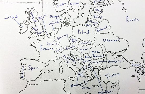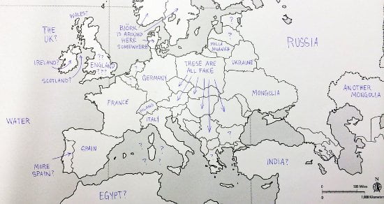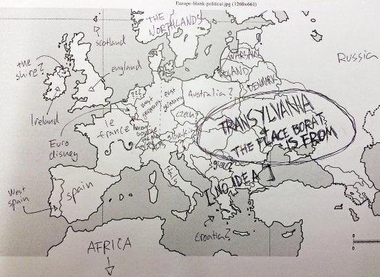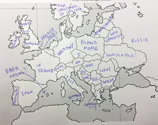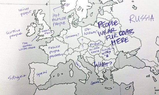 Ştim că americanii stau prost cu geografia și mai ales când e vorba de Europa. Iar când elevii lor  încearcă să pună ţările Europei pe hartă, iese ceva cam de genul ăsta…