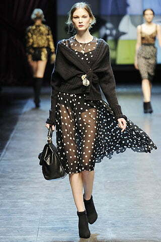 Pentru show-ul de toamnă-iarnă 2010, Domenico Dolce şi Stefano Gabbana au trimis pe catwalk mai mult de 70 de modele purtând creaţiile în care toţi au văzut exprimarea valorilor autentice care au contribuit de-a lungul a 25 de ani la identitatea artistică inconfundabilă a brandului. Catifea, dantelă, tricotaje. Buline şi animal print. Bordo, verde, negru. Coliere bogate.