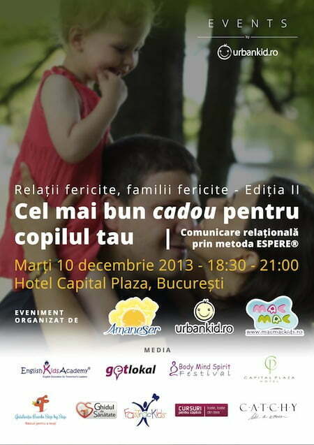 Despre cum poţi păstra relaţia frumoasă şi armonioasă cu copilul tău va fi vorba la conferinţa Relaţii fericite, familii fericite. Vei afla, dacă nu ştii încă, ce este metoda Espere şi cum te poate ajuta să comunici armonios cu copilul tău, cum să-l asculţi, să petreci timpul cu el, ce mesaje îi transmiţi. Să acorzi atenţie nevoilor şi dorinţelor lui. Să construiţi împreună o relaţie frumoasă, de încredere, să-l înveţi să fie independent. Poate acesta va fi unul dintre cele mai frumoase cadouri pe care i le poţi oferi, nu doar într-o zi, ci zi de zi, copilului tău.