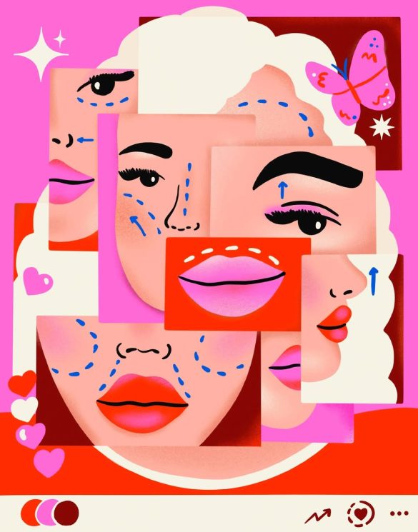 E un tip de presiune psihologică nouă, în care chipul devine un proiect continuu, supus actualizărilor la fel ca orice alt produs vizual. Presiunea e amplificată de expunerea constantă la fețe „perfecte”, la influenceri care își documentează fiecare corecție ca pe o victorie, transformând bisturiul într-un act de întreținere. Când imaginea a devenit identitate, iar imperfecțiunea — un risc social, chirurgia estetică nu mai este despre a schimba ceva când e nevoie reală, ci despre a conserva o versiune acceptată a propriei persoane, până la a o confunda cu un model impus, repetat la nesfârșit în mulțimea de chipuri optimizate digital.