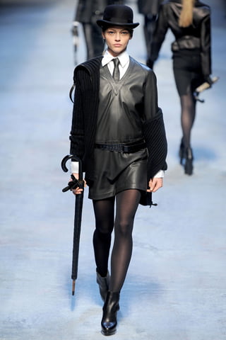 Jean Paul Gaultier, timp de şapte ani, directorul de creaţie al casei Hermès, s-a inspirat pentru colecţia de toamnă-iarnă 2010 din serialul britanic “The Avengers” difuzat în anii ’60. Aşadar, pe catwalk au defilat modele îmbăcate dandy-like, predominant în negru: pălării Bowler, piele în exces, costume pe corp, trench-uri drepte, veste, cămăşi, cravate, pantaloni, dar şi… fuste creion. Gulerele de blană mai îndulcesc unele dintre ţinute. Ceasuri de buzunar, dar şi genţi ori umbrele animal print. Jean Paul Gaultier va părăsi casa Hermès pentru proiectele proprii, dar numai după ce va realiza ultima colecţie, cea pentru primăvara anului 2011. În locul său va fi numit Christopher Lemaire, fostul director artistic de la Lacoste.