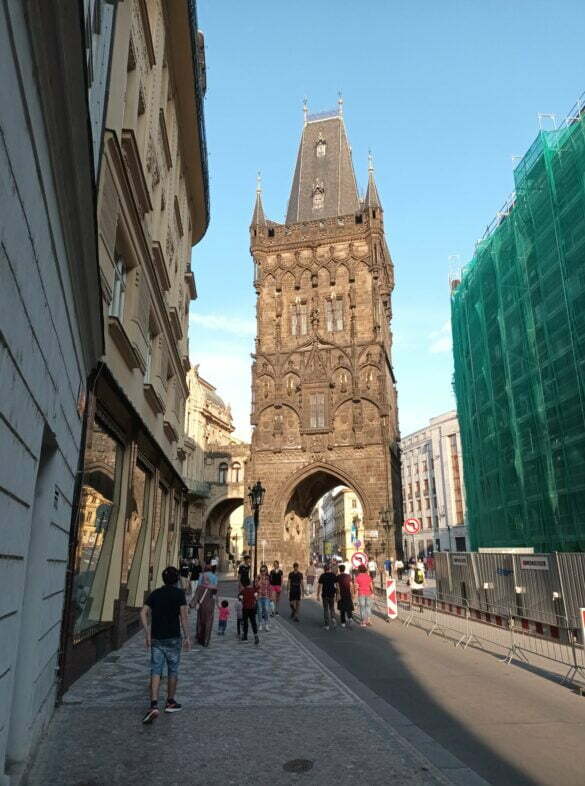 Turnul/Poarta Pulberăriei (Prašná brána) este un turn gotic situat în Piața Republicii, lângă Casa Municipală. Este una dintre cele mai originale porți ale orașului, fiind construită în secolul al XV-lea ca parte a ansamblului curții regale. Turnul are 65 m înălțime și separă Orașul Vechi (Staré Město) de Orașul Nou (Nové Město). Strada Celetná, cpornește de la turn constituie prima parte a Drumului Regal care duce în Cetatea din Praga. Am urcat! Scara e criminală, îngustă, stil melc, și te rogi să nu vină cineva din sens opus… La fiecare etaj e o expoziție, iar perspectiva de sus e magnifică.